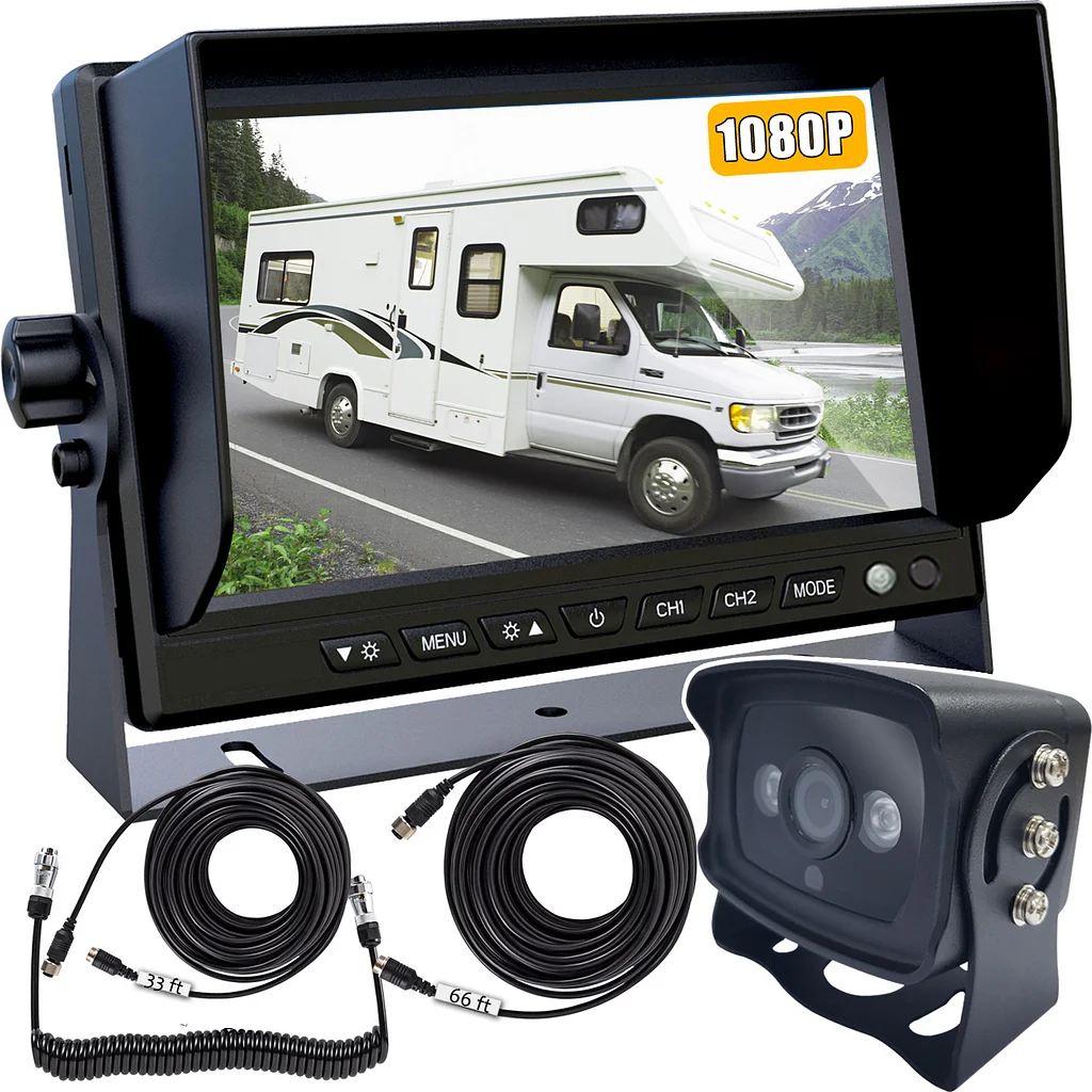 If you have a truck, RV, trailer, bus, harvester, pickup, motorhome large vehicles or commercial vehicle and you’re looking for an economical solution, then you would probably only want 1 backup camera. In that case, I would go with a 7” IPS HD VMW7 1080P Wireless Backup Camera Kit , that kit is recommended because it includes everything you need for installation.
