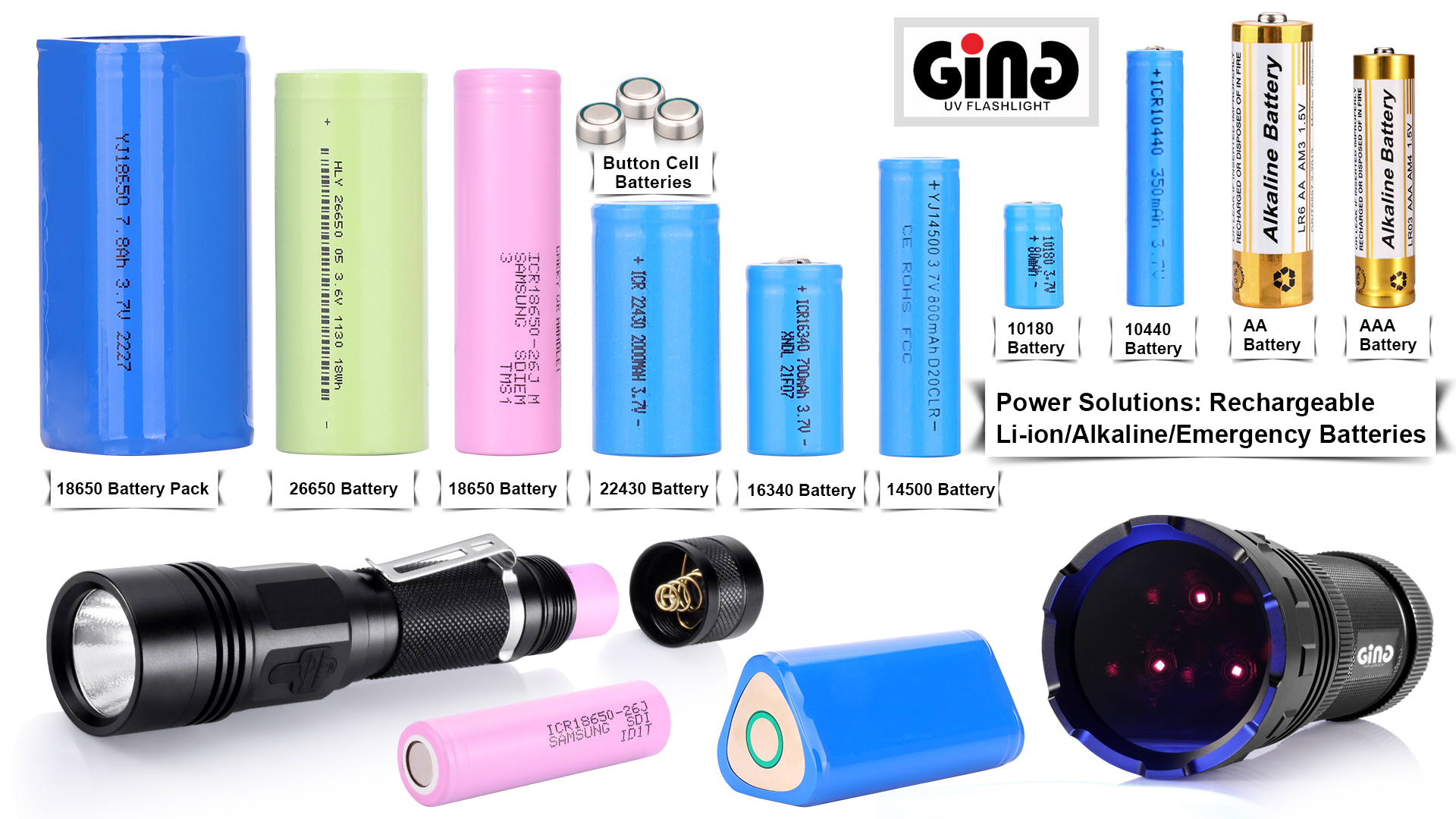 18650 Li-ion Battery: High capacity, long lifespan, suitable for most medium- to high-powered flashlights.